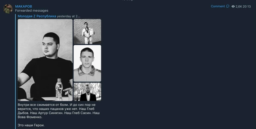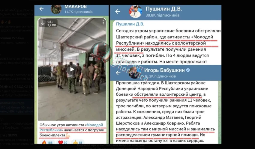 Pavisam drīz no “Telegram” pazuda Makarova video, kurā redzama brašā munīcijas lādēšana, bet tā vietā gan viņš, gan arī pašpasludinātās “Doņeckas tautas republikas” līderis Deniss Pušiļins sāka izplatīt līdzjūtības par “Jaunās republikas” bojā gājušajiem biedriem.