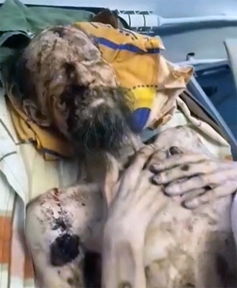 Šokējošajā video redzams Aleksandrs, kura seju un ķermeni klāj netīrumi un sakaltuši asins pleķi. Viņa āda ir nāvīgi bālā krāsā, un vīrietis tik tikko spēj atvērt acis.