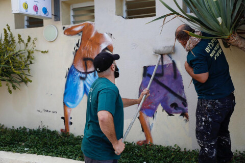 Reaģējot uz notiekošo, Telavivas amatpersonas svētdien aizkrāsoja pirms 18 gadiem uzzīmēto glūnošo puišu zīmējumu, kas bieži ticis kritizēts, jo tas uzzīmēts pie loga, kur atrodas sieviešu ģērbtuves pie pilsētas pludmales.